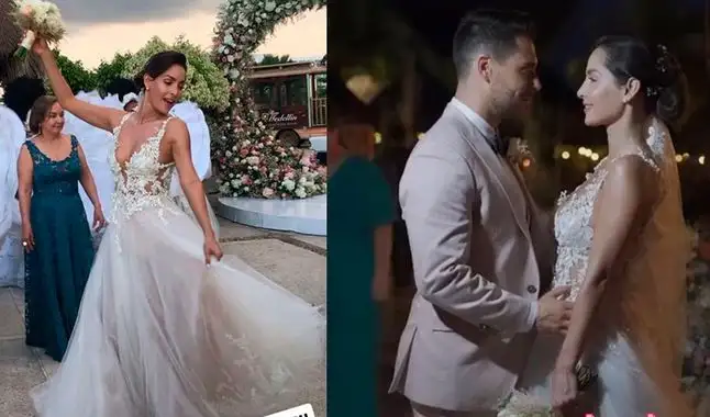 Sin embargo, por la rapidez en los preparativos del matrimonio, la actriz confesó que tuvo que correr en la búsqueda del vestido de novia que dejó en manos del diseñador Jorge Duque.