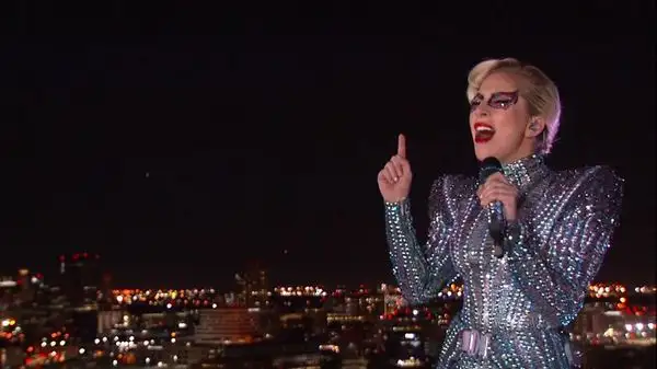 El espectacular salto que dio Lady Gaga en el inicio de su presentación en el medio tiempo del Super Bowl fue parte de un montaje ya que la cantante nunca se lanzó desde el techo del estadio como la audiencia de TV lo creyó.