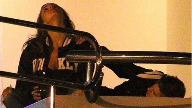 En las imágenes se lo puede ver abrazando y besando a la conejita de Playboy en el exterior del barco.