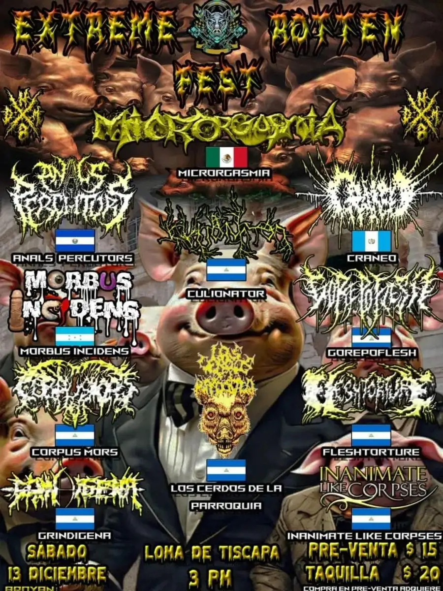 Los asistentes disfrutaron de la música interpretada por las bandas: Cráneo de Guatemala, Culionator de Nicaragua; Morbus Indicens de Honduras; Microrgasmia de México, Anals Percutors de El Salvador; Los Cerdos de la Parroquia de Nicaragua; entre otras.