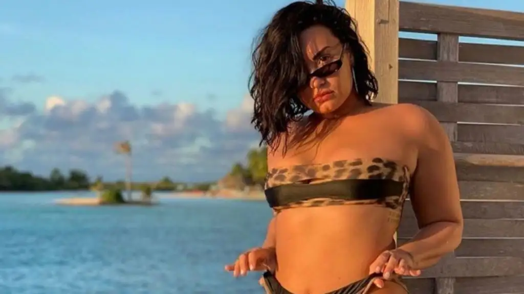 Las imágenes muestran a Lovato vistiendo una transparencia en lo que parece ser un traje de baño, pero también hay otras capturas en las que luce completamente desnuda.