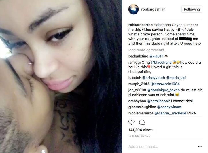 En su cuenta de Instagram, Kardashian compartió un video de Chyna besando a otro hombre en la casa que él mantiene. En el texto que acompaña el material, Rob alega que el clip se lo envió ella misma por mensaje.