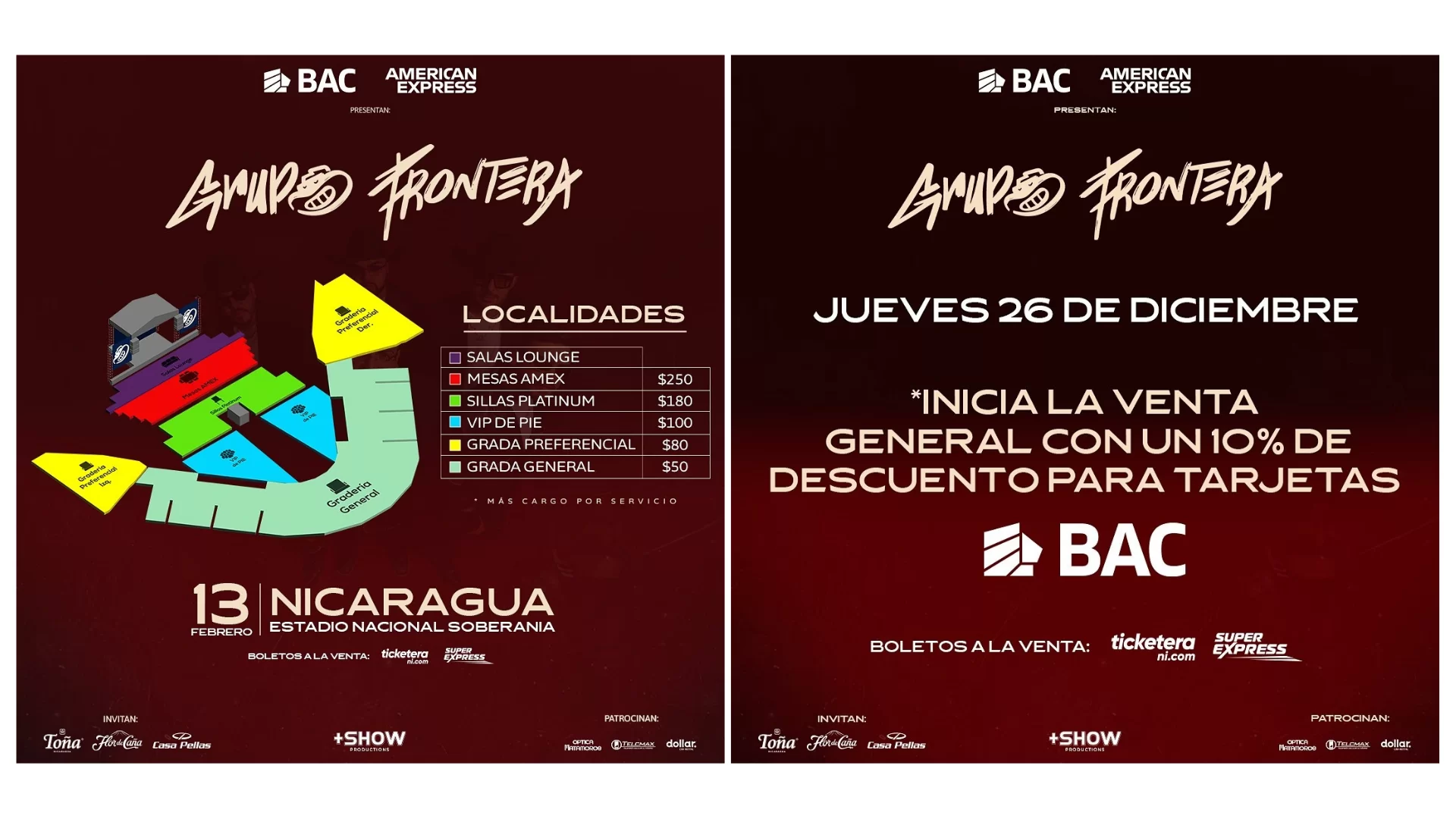 Este jueves inicio la venta oficial de los boletos para el tan esperado concierto del grupo Frontera a realizarse el jueves 13 de febrero del año 2025, en el Estadio de béisbol Soberanía en Managua.