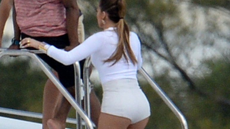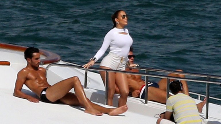 Así fue como vestida de blanco, se subió a un lujoso yate en Miami juntos a todos bailarines desnudos que se movían al ritmo de JLO.