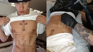 El diseño elegido por Bieber fue la palabra Forgive y el responsable de plasmarlo en uno de los costados de su panza fue el tatuador neoyorquino Bang Bang, quien también realizó trabajos en los cuerpos de Rihanna, Selena Gómez y Katy Perry, entre otras celebridades.