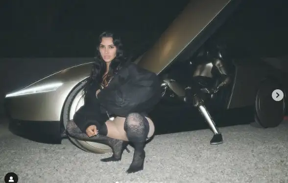 En esta ocasión, la empresaria compartió un carrusel de fotos en las que posaba de manera sensual con unas medias de su propia marca, acompañada de un robot humanoide de Tesla y un coche futurista. La jugada parece ser una colaboración con Elon Musk para promover dos de sus creaciones más ambiciosas: el robot Optimus y el Cybercab, el coche autónomo.