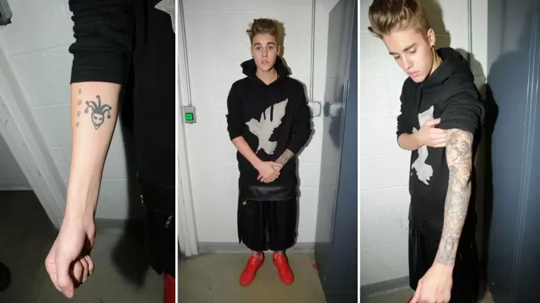 Una clave de sol, un retrato de Cristo, una corona, el logo de su equipo favorito de hockey, una flor, la palabra «Believe» y distintos animales como un pequeño pájaro y la cara de un tigre son algunos de los más de veinte tatuajes que el artista canadiense tiene en sus brazos, torso, piernas, espalda y otros lugares de su cuerpo.