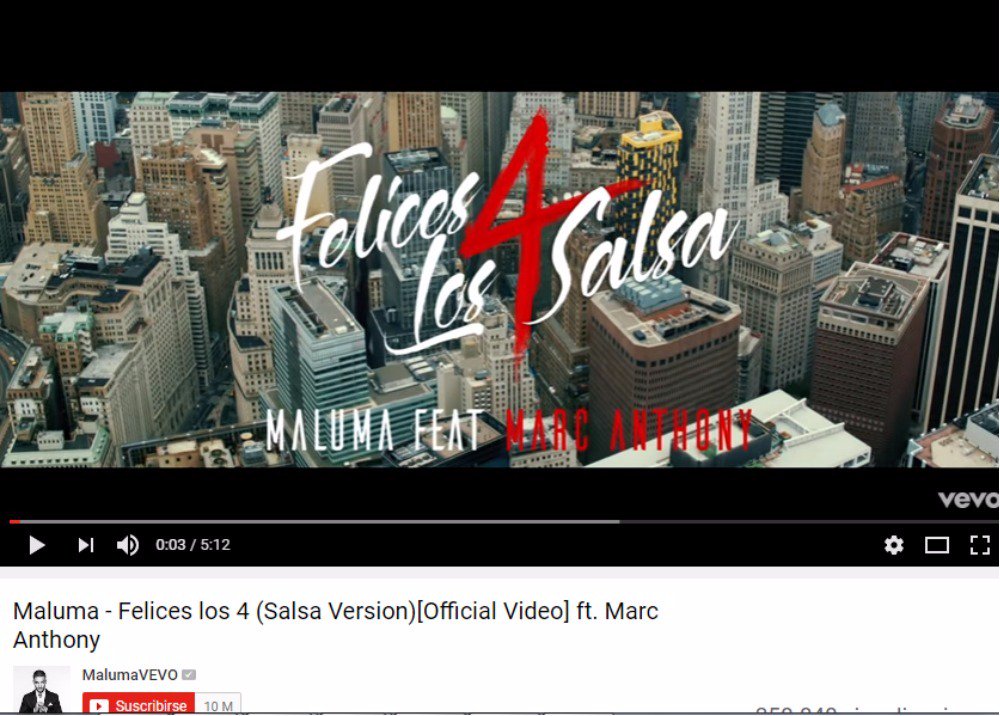 Los cantantes Maluma y Marc Anthony lanzaron hoy viernes su video oficial de la exitosa canción «Felices los 4» en su versión salsa.