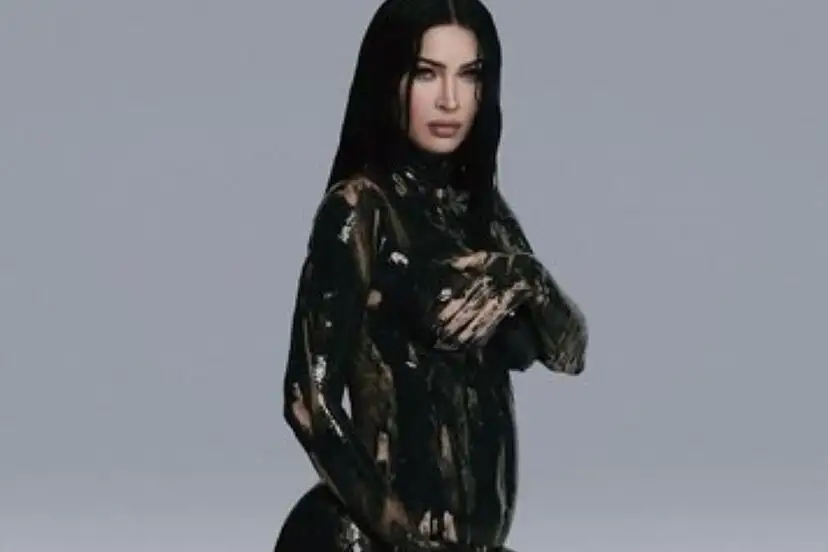 Megan Fox decidió revelar su embarazo a través de una imagen poco inusual, pues en ésta muestra su cuerpo desnudo y cubierto con una pintura negra, sin embargo, su barriguita destaca.