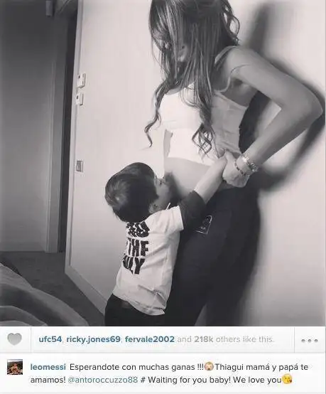 “Esperándote con muchas ganas!!! ¡Thiagui, mamá y papá te amamos! Can’t wait to welcome you into our world!!! We love you! Thiagui, mum and dad. LIO”, escribió Messi junto a la imagen.