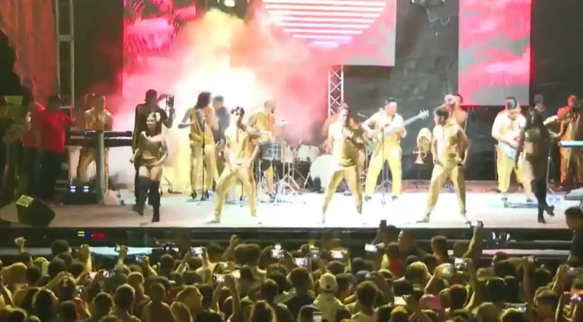 En punto de las 7 de la noche, Fred Quintero, Omar Vivas y Oscar Morales, vocalistas de Costa Azul, y sus bellas bailarinas con vestuarios en color dorado salieron al escenario para deleitar a sus seguidores.