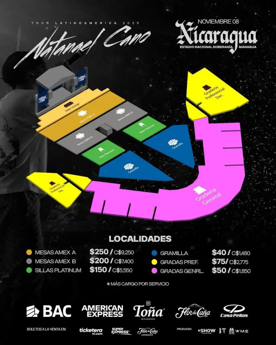 Los boletos estarán disponibles a través de Ticketera Nicaragua, Super Express y puntos autorizados. Además, el evento cuenta con el respaldo de BAC, American Express, Flor de Caña, Toña y Casa Pellas, garantizando un espectáculo de primer nivel en la capital nicaragüense.