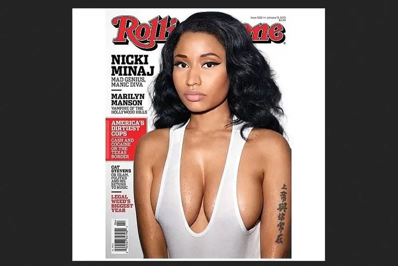 La cantante publicó en sus redes sociales una foto de dicha portada en la que luce una camiseta blanca con tremendo escote. Nicki acompaña la imágen con un mensaje: «El amor de mi nueva vida, la portada de Rolling Stone. Realizada por Terry Richardson»
