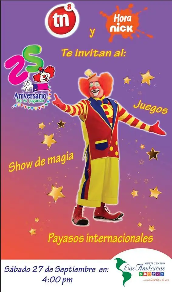 Payasos internacionales, show de magia, juegos y mucho más, será lo que se ofrecerá, el próximo sábado 27 de septiembre a partir de las cuatro de la tarde en el Parqueo de Multicentro Las Américas, detalló “Pipo”.