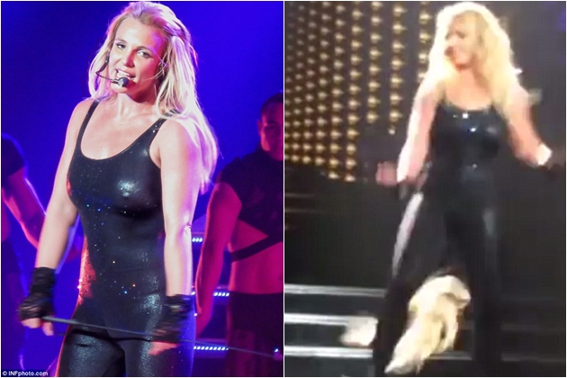 Durante la rutina de baile, parte del cabello de la cantante se cayó, pero como toda una profesional, Britney siguió con el show sin importarle el incidente.