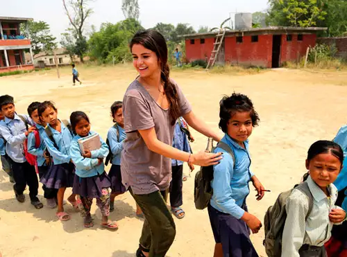 En un video de su viaje, la cantante de 21 años aparece jugando muy contenta y bailando con los niños en la escuela secundaria Satbariya Rapti, y dándoles abrazos y dejando que se sienten en su regazo. La estrella incluso documentó el viaje al tomarse unas selfies junto a los pequeños.