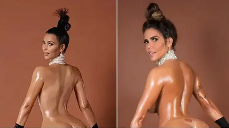 La modelo Andressa Prata, de San Pablo, le rindió tributo a la mediática posando al desnudo, como lo hizo ella en 2014 para Paper Magazine