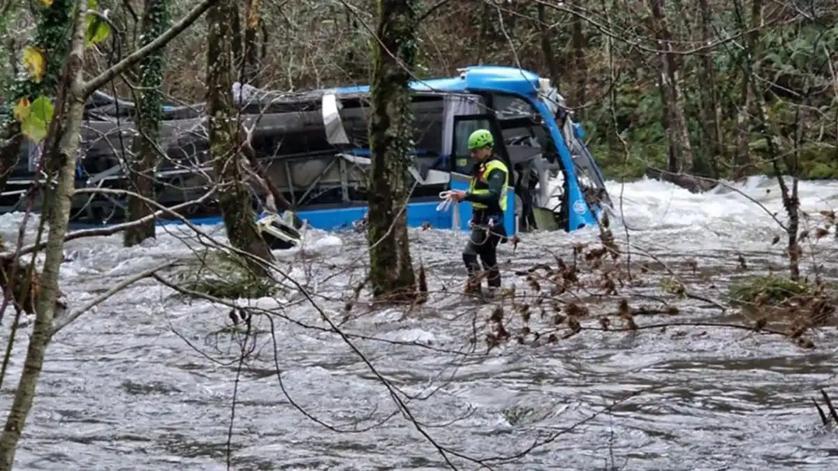 Cuatro personas murieron y tres se encuentran desaparecidas luego que un microbús, que transportaba a familiares que iban a visitar a sus familiares presos, cayó en un río en Galicia al noroeste de España.