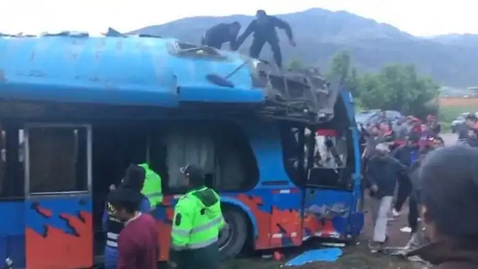 Siete personas murieron y 37 resultaron lesionados al precipitarse un autobús escolar a un guindo en la provincia de Quispicanchi en Cusco, Perú.