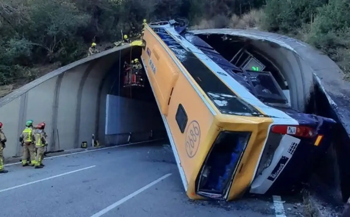 Un aparatoso accidente de un autobús que transportaba unos 60 trabajadores de la empresa Inditex dejó al vehículo empotrado en vertical en la entrada de un túnel en Cataluña y provocó varios heridos, algunos de ellos en estado… pic.twitter.com/8RC85bR15q