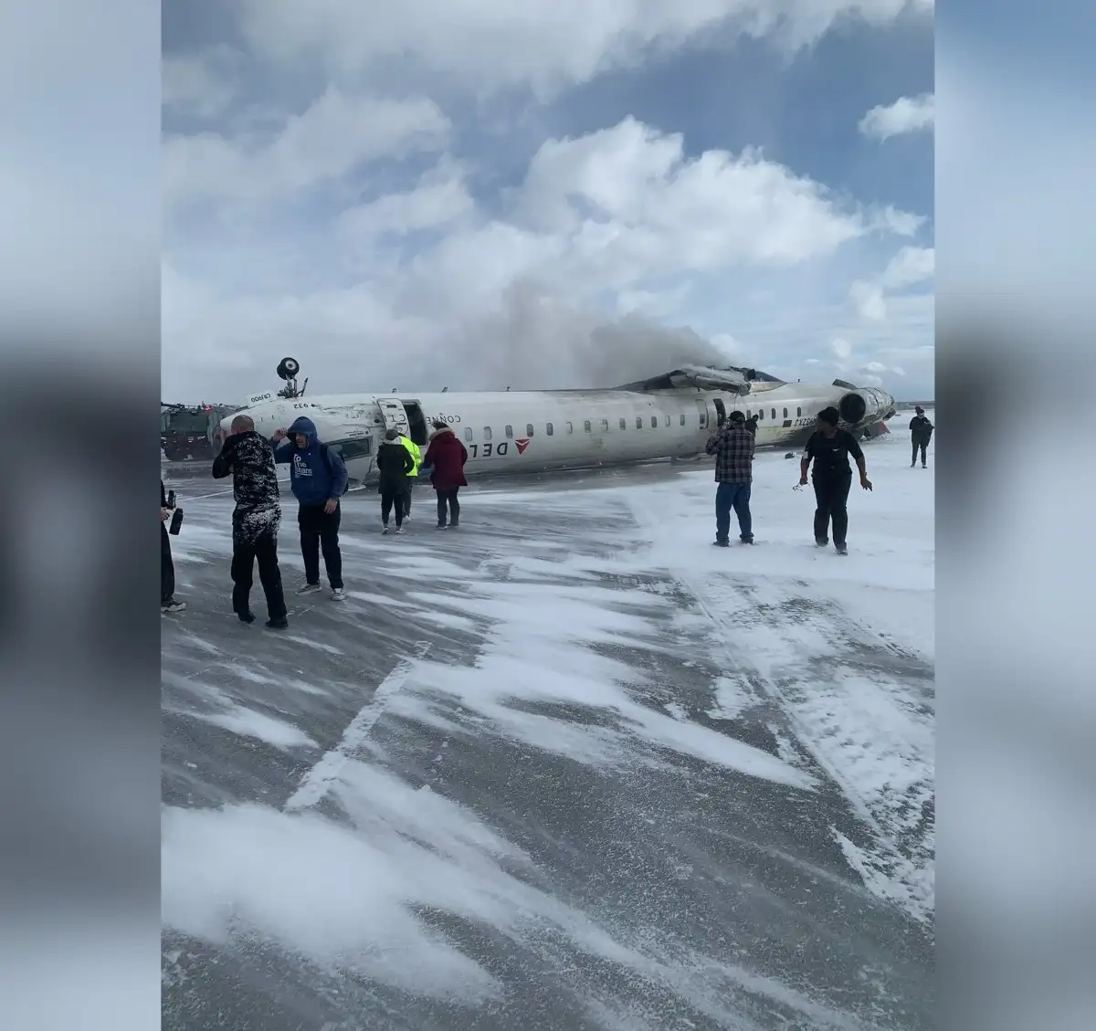 🇨🇦 | URGENTE: Un avión de Delta Airlines se estrelló en el Aeropuerto Internacional de Toronto y volcó en el impacto. Las alas desaparecieron. Los equipos de emergencia están respondiendo a la emergencia. pic.twitter.com/jDwjrxGewR