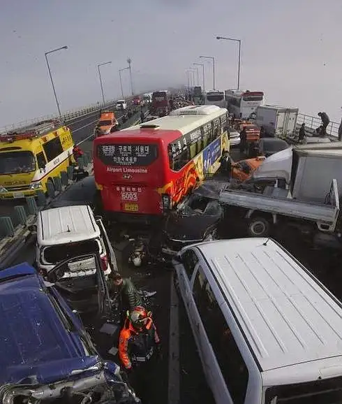 La colisión múltiple se produjo sobre las 05:50 hora local (20:50 GMT del lunes) en una autopista cerca de Goyang, al oeste de la capital, Seúl.