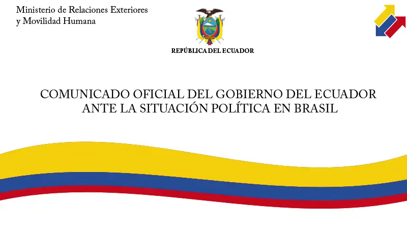 El Gobierno de Ecuador expresó este jueves su profunda preocupación por los acontecimientos políticos ocurridos en la República Federativa de Brasil, donde en las últimas horas la presidenta Constitucional, Dilma Rousseff, fue apartada de su cargo.