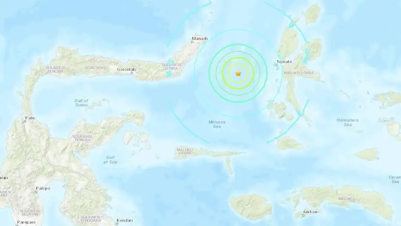 Por su parte el Servicio Geológico de EE.UU. informó que el sismo fue de magnitud 6.9 y que su epicentro fue a 129 kilómetros al suroeste de la localidad de Kota Ternate, en el archipiélago de Las Molucas y a una profundidad de 24.9 kilómetros.