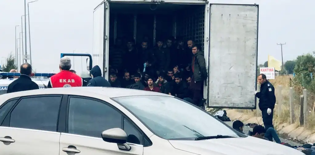La Policía griega encontró a 41 migrantes de origen afgano que viajaban en un camión frigorífico.