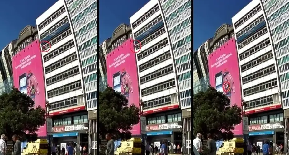 Los hechos se registraron en el edificio número 6 de Cantones, junto al emblemático obelisco de la ciudad de Galicia y, una de las personas capturó el momento de suspenso.