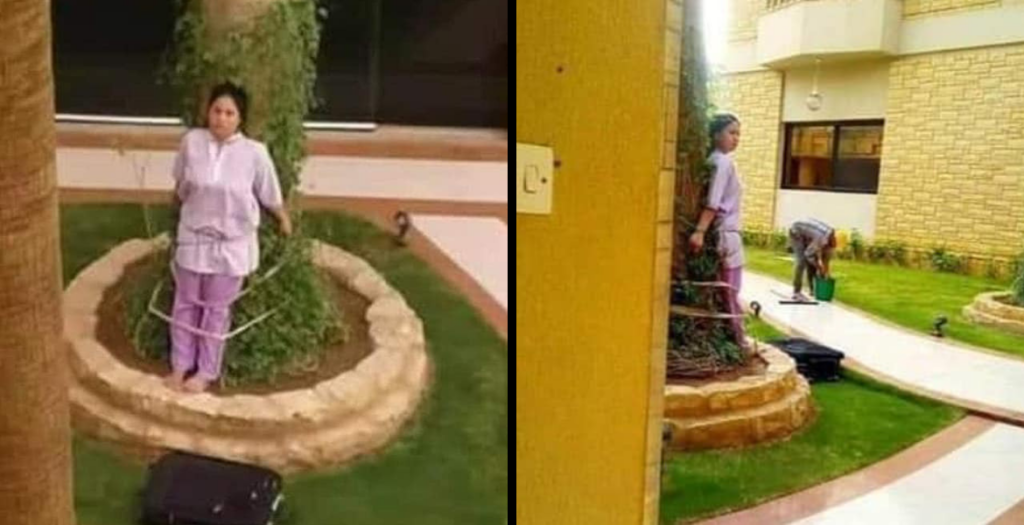 Una trabajadora doméstica de origen filipino fue castigada cruelmente por sus patrones luego de haber dejado unos muebles de lujo fuera de la casa. Según compañeros de la pobre mujer de 26 años, fue atada a un árbol bajo el sol por varias horas.