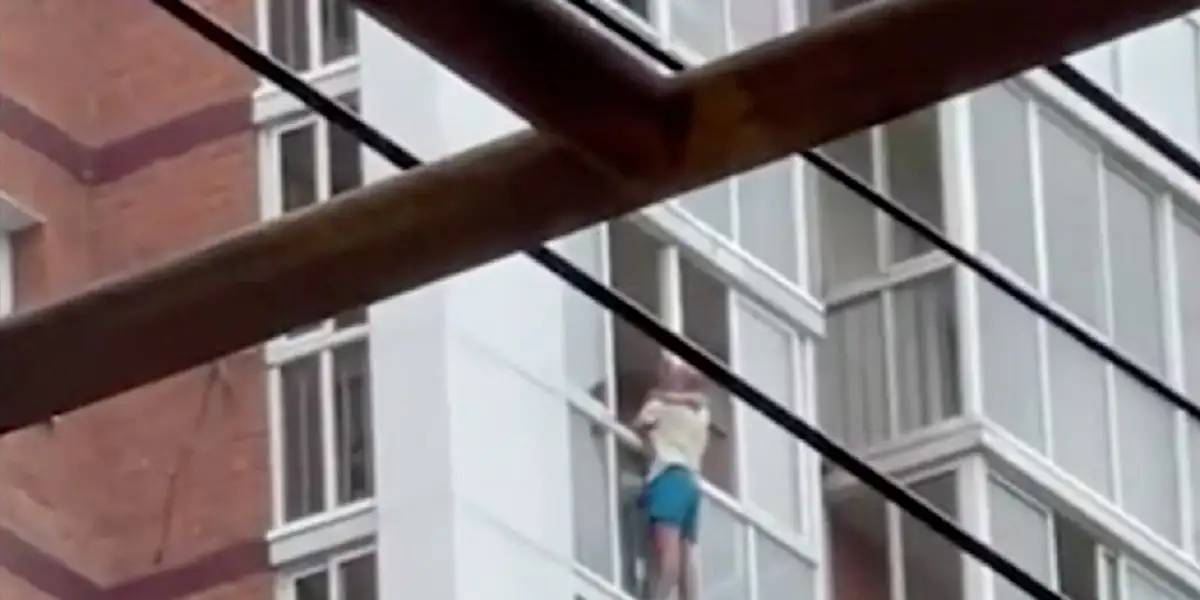 Anton Litvinov, de 35 años, estuvo prácticamente colgnado en una pequeña ventana de su apartamento situado en el piso número 13; durante todo ese tiempo mantuvo a su bebé en brazos.