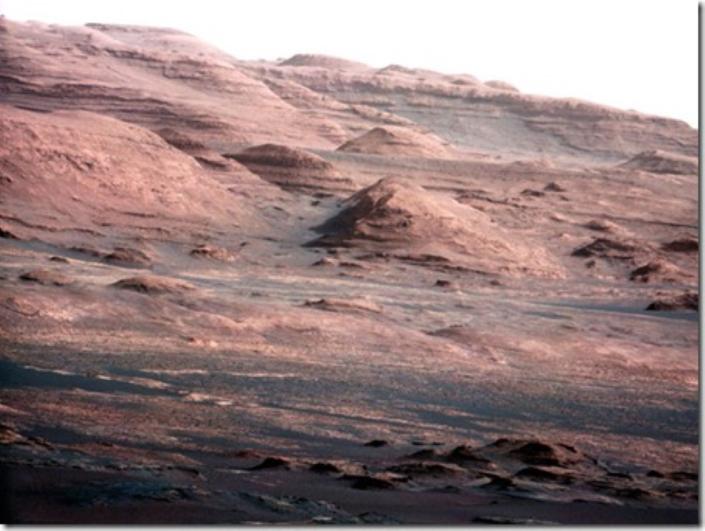 La NASA dio a conocer una foto panorámica en colores del Monte Sharp, el objetivo del Curiosity, el explorador del planeta Marte.
