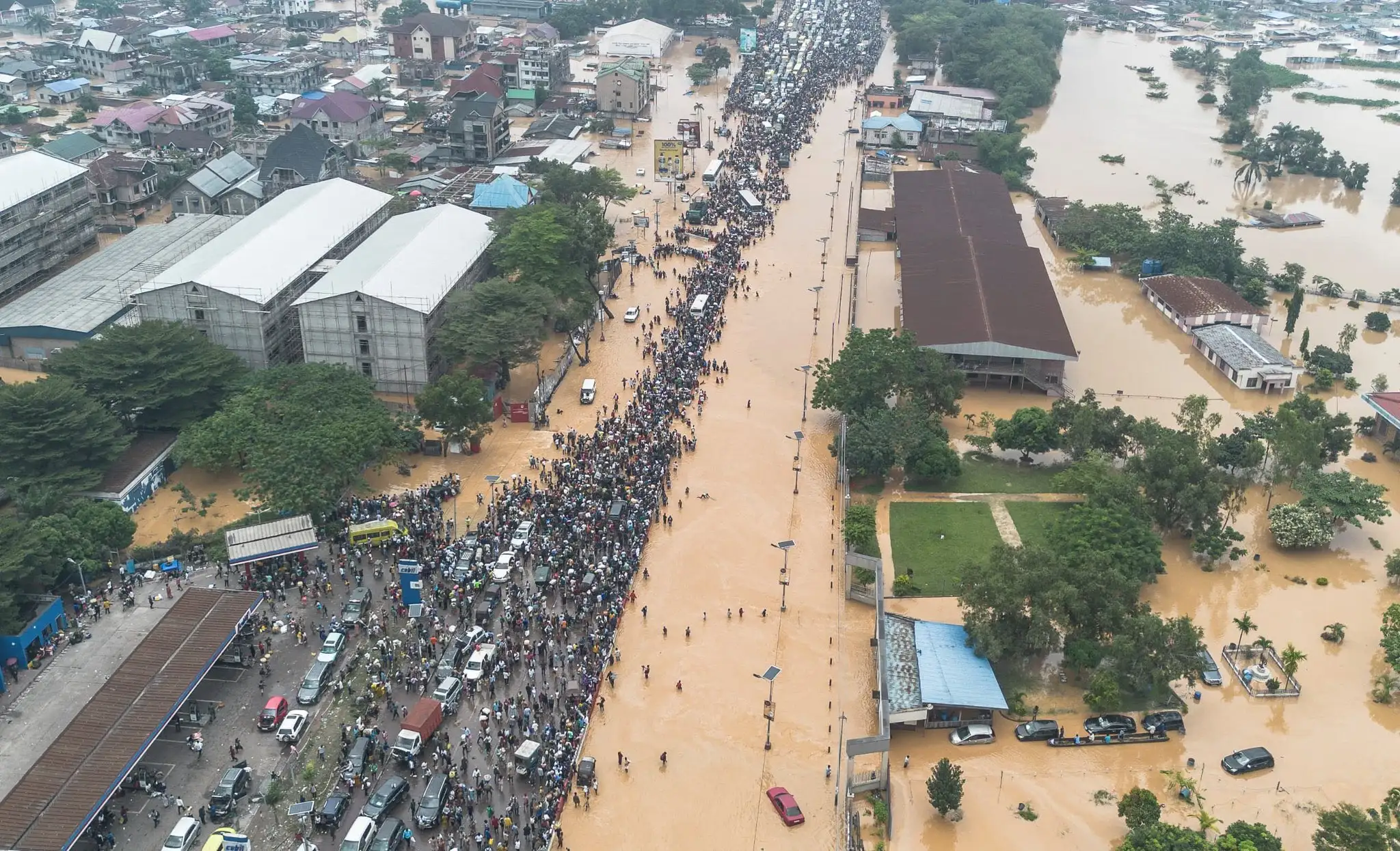 Y aquí viene lo más complicado: Muchísimas personas quedaron atrapados en sus carros en el bulevar Lumumba porque el río Ndjili se desbordó e inundó la carretera. Imagínense estar sentado en su carro viendo cómo el agua sube y sube sin poder hacer nada. ¡Qué susto más grande!