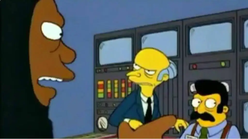 En uno de los episodios se ve cuando el señor Montgomery Burns habla con un empleado inmigrante, a los pocos minutos bajan del techo dos personas.
