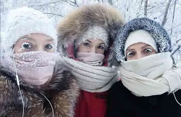 Y aunque sus habitantes están acostumbrados a estas bajas temperatura en redes sociales abundan las fotos de selfies congeladas donde las mujeres muestran sus pestañas completamente congeladas debido al aire gélido.