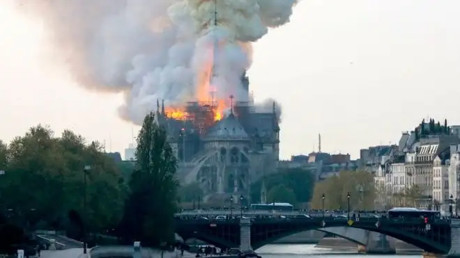 Uno de los lugares más concurridos y emblemáticos de París, a como lo es la Catedral de Notre-Dame se incendió a eso de las 19:10 horas. Las llamas devoraron la aguja y parte del techo, las hipótesis apuntan a que el siniestro pudo haber empezado a causa de los trabajos de renovación que se llevaban a cabo en la histórica catedral.