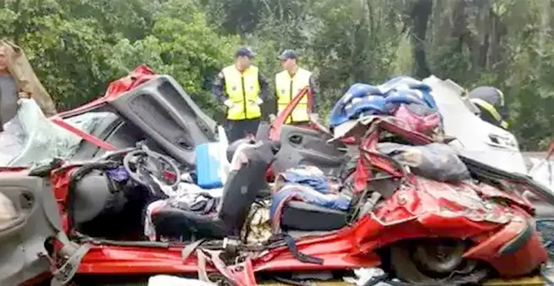 Según los primeros datos, la tragedia fue provocada por el impacto entre dos camiones, lo que originó la caída de uno de los containers sobre el auto en el que viajaban los argentinos, que murieron en el acto.