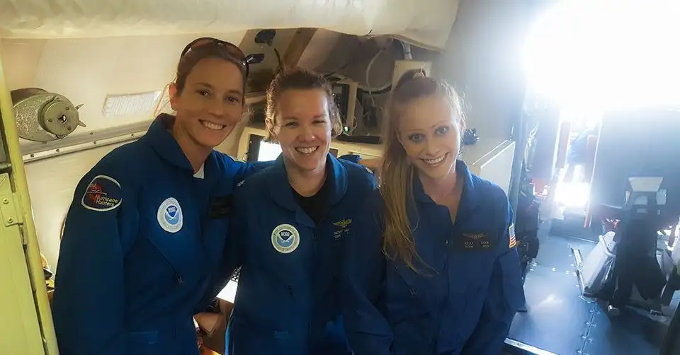 Ellas son la directora de vuelo y meteoróloga, Jess Williams; la piloto y oficial de NOAA, Cathy Martin y la científica especializada en investigación de huracanes, Kelly Ryan.
