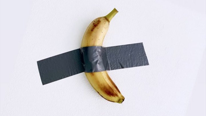 Esta insólita historia comenzó esta semana luego que un artista italiano decidió colocar un banano pegado a una pared con una cinta aislante, e increíblemente vendió la «obra de arte» por 120 mil dólares.