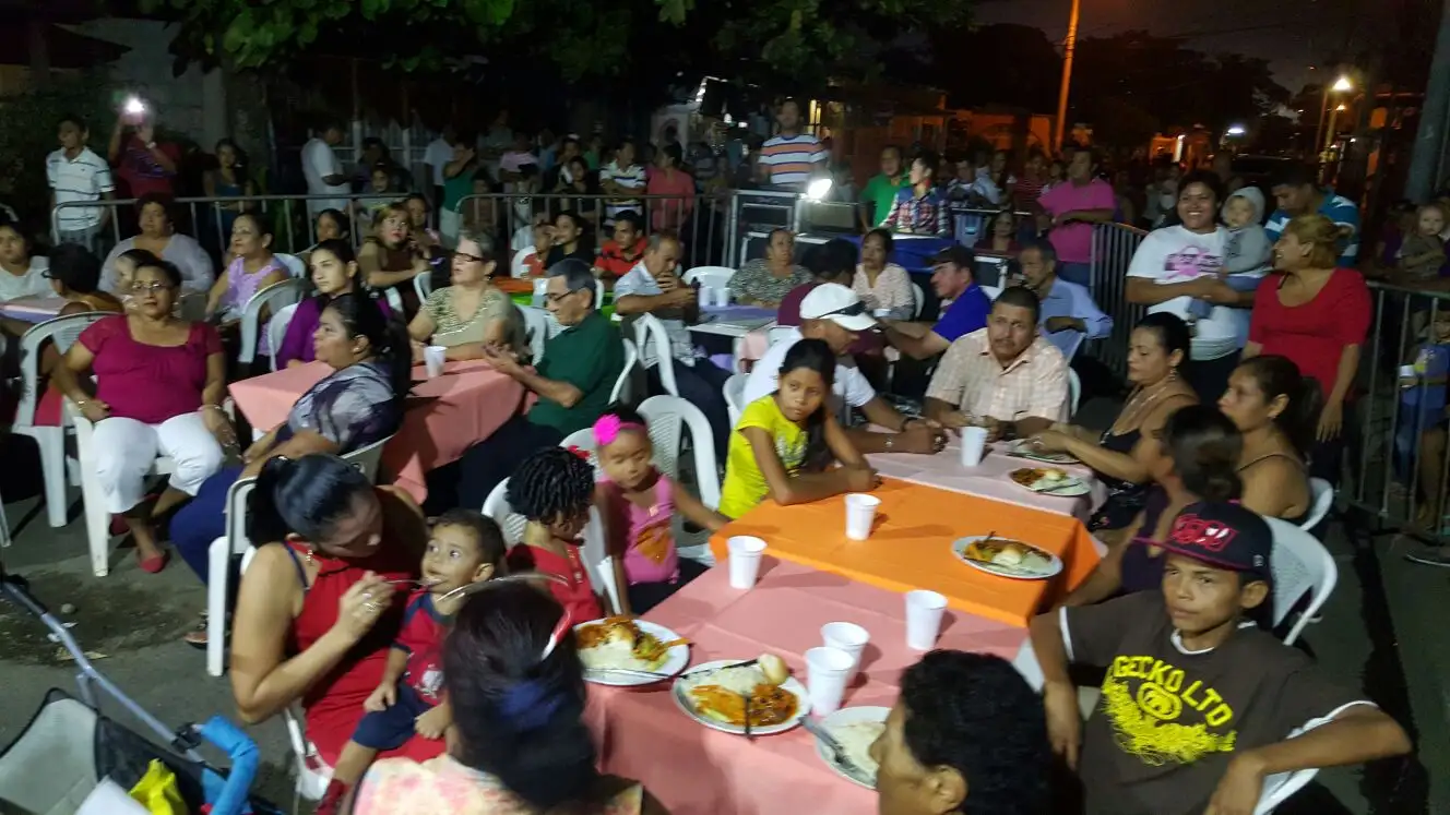 A eso de las 7:30 de la noche, mientras doña Mirna Gioconda y sus invitados “chamoleaban” Pollo en salsa jalapeña y Carne pinchada, el cielo del barrio Cristo del Rosario se iluminó con Luces Chinas El Halcón, uno de nuestros patrocinadores.