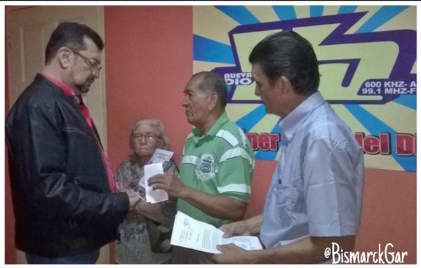 El reconocimiento fue entregado al licenciado Dennis Schwartz Galo, Director de Tu Nueva Radio Ya, por la señora María Esther Castillo Loáisiga, de 81 años, quien también le colocó la insignia de la Juventud Sandinista conmemorativa de los caídos en San José de las mulas.