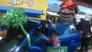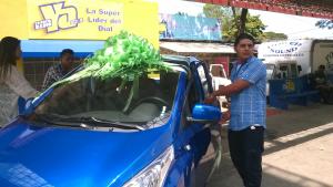 En un ambiente de emoción y alegría, La Súper Líder del Dial y Media Interactiva entregaron este viernes a Javier Antonio Medina Sánchez, de 30 años, el primero de tres autos Hyundai modelo EON del año 2015, que están siendo rifados a través de la Súper Promoción de “Juancho Billetón”.