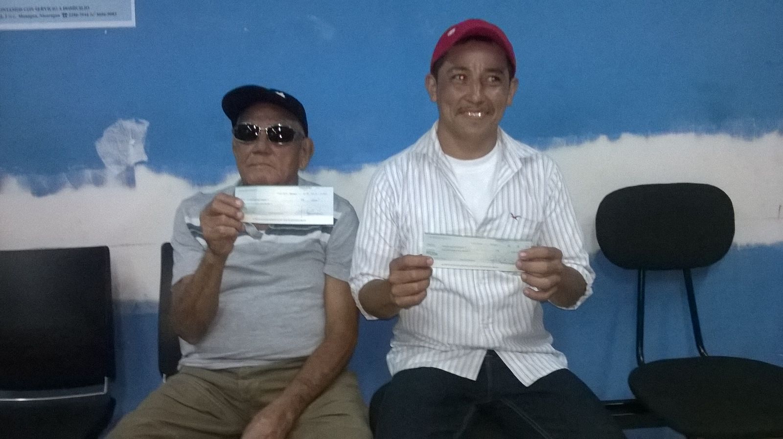 También con una sonrisa de oreja a oreja se encuentran el capitalino José Adán Madrigal Velázquez, de 79 años, y don Rolando Obando, de Matiguás, Matagalpa, quienes este miércoles recibieron cada uno un cheque por 5 mil córdobas, que ganaron en las promociones de Tu Nueva Radio Ya y Tecnologías Móviles.