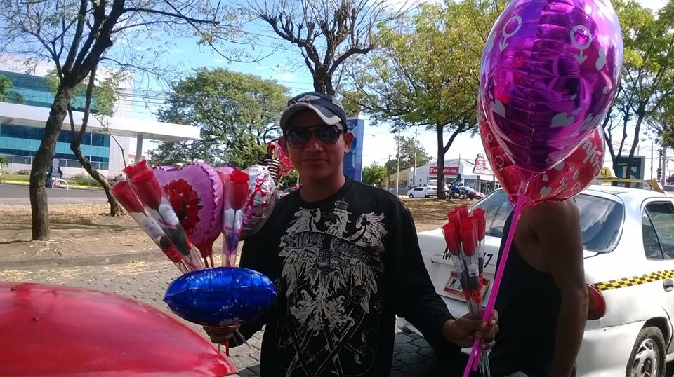 Los semáforos y rotondas de Managua amanecieron este viernes, llenos de artículos alusivos al Amor y la Amistad.