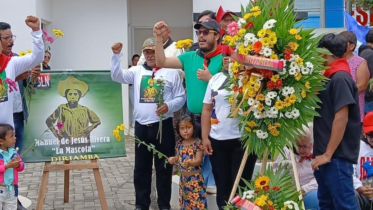 En el 47 aniversario del Paso a la Inmortalidad del Niño Mártir, Manuel de Jesús Rivera, conocido cariñosamente como “La Mascota”, militantes de todas las edades junto a autoridades políticas y municipales de Diriamba, Carazo.