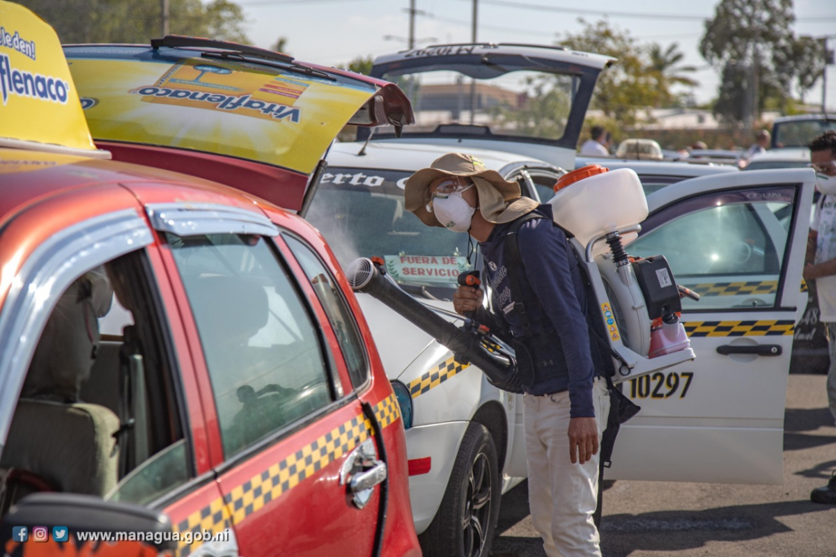 Como parte de las medidas de prevención que intensifica el Buen Gobierno para proteger la salud de las familias, la Alcaldía del Poder Ciudadano de Managua, a través del IRTRAMMA sigue trabajando en 5 puntos para la desinfección de las unidades del transporte selectivo de la ciudad capital.
