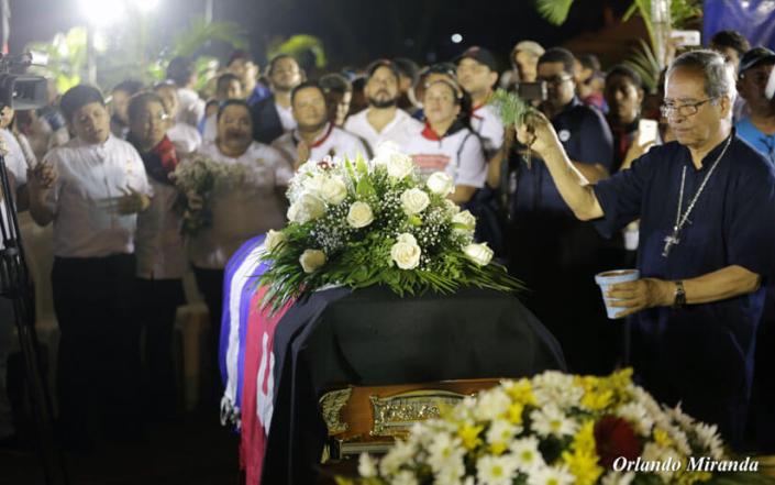 “Dichoso los que trabajan por la paz, porque eso son los hijos de Dios y eso es lo que hizo Bismarck Martínez trabajar por la paz, la paz que significa impulsar el desarrollo, el progreso, el bienestar, la educación, el bienestar de todo su pueblo, y esa es la misión que cumplió a plenitud”, destacó el cura párroco de la iglesia La Merced en el barrio Larreynaga.
