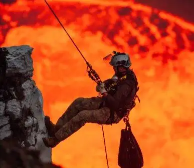 Los bomberos apoyaron la expedición de Sam Cossman en el volcán Masaya, en el que estuvo Max Dugal, uno de sus compañeros en la expedición e instructor Irata certificado.