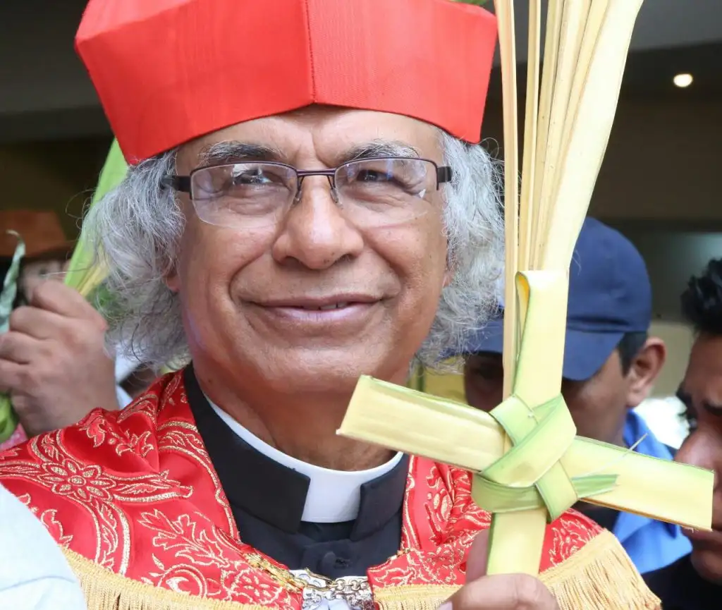 El Cardenal Leopoldo Brenes, exhorta y ora por la paz en el mundo para que desaparezca la violencia y vivamos en solidaridad y fraternidad, durante la misa de Domingo de Ramos, celebrada en la Catedral Metropolitana de la Inmaculada Concepción de María de Managua.
